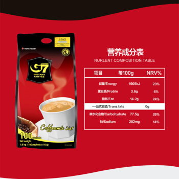 越南进口 中原G7三合一速溶咖啡1600g (16gx100条)