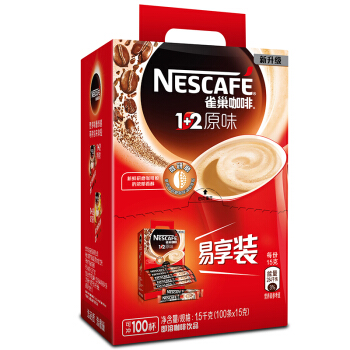 雀巢(Nestle)咖啡 速溶 1+2 原味 微研磨 冲调饮品 100条1500g(新老包装交替发货) |