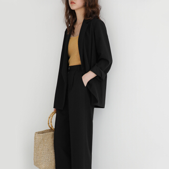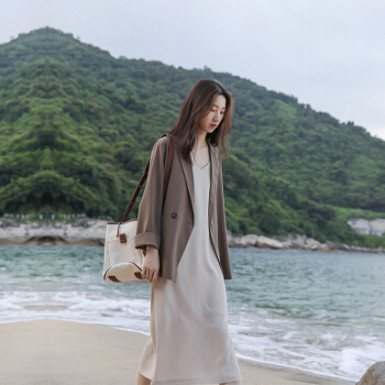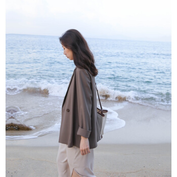 小西装>>BINXUN 小西装外套女春装2020韩版英伦风上衣复古气质休闲宽松chic小西服女夏 卡其色 S 西装外套