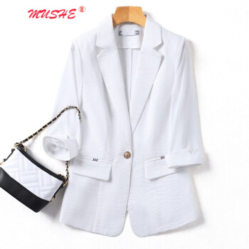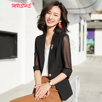 MUSHE原创轻奢 小西装短外套女2020夏季新款时尚韩版减龄显瘦气质优雅网纱拼接西服上衣外套 白色 M |