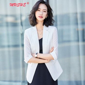 小西装>>MUSHE原创轻奢 小西装短外套女2020夏季新款时尚韩版减龄显瘦气质优雅网纱拼接西服上衣外套 白色 M