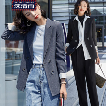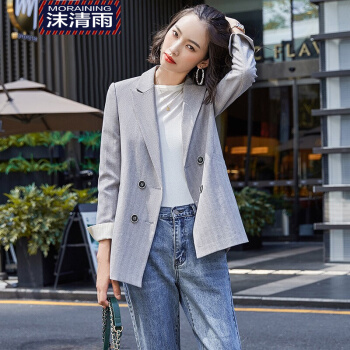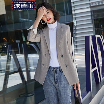 沫清雨小西装女英伦风时尚修身气质西服外套春秋款休闲百搭显瘦质感面料Y9609Z 单件深灰西装 M
