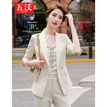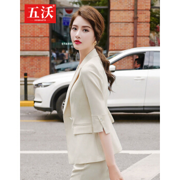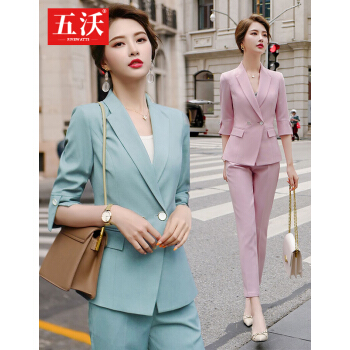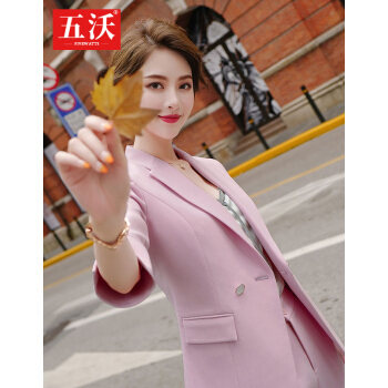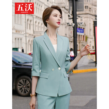 五沃 职业装女装套装小西装女修身设计感小众韩版时尚气质名媛西服 单件浅绿色外套 L