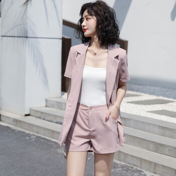 锦绣安娜 小西装女夏季2020年新款韩版气质时尚休闲短裤套装洋气西服两件套K2038 粉色 M