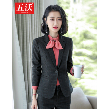 五沃 职业装女装套装小西装女时尚修身工作服英伦风ol气质商务正装格子西服 单件外套(备注颜色) L