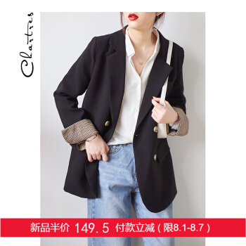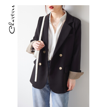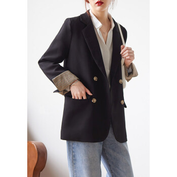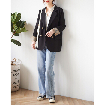 【新品5折 149.5元】黑色小西装女 2020秋韩版小外套小个子网红短款上衣休闲西服外套X445 黑色 M