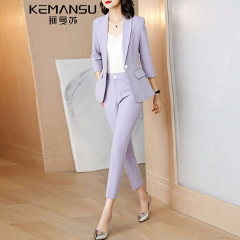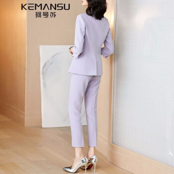 珂曼苏品牌女装紫色小西装套装女2020年秋季气质休闲职业西服外套韩版名媛小香风 西装+裤子 S |