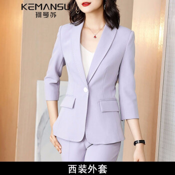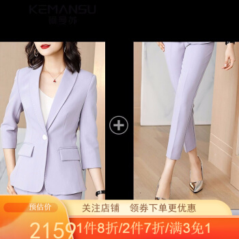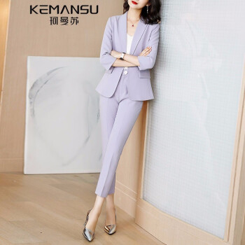 小西装>>珂曼苏品牌女装紫色小西装套装女2020年秋季气质休闲职业西服外套韩版名媛小香风 西装+裤子 S