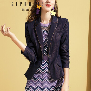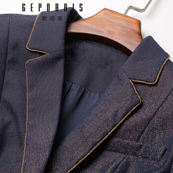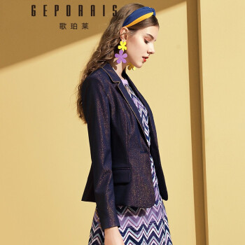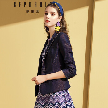 歌珀莱品牌女装时尚休闲西装外套2020秋季新款复古亮丝西服女上衣 深蓝色 S