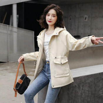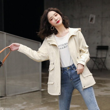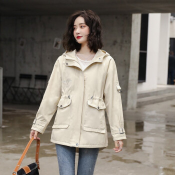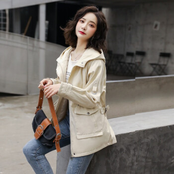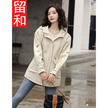 留和 短外套2020秋装新款女装时尚休闲连帽女士风衣外套女F6607 米色 L