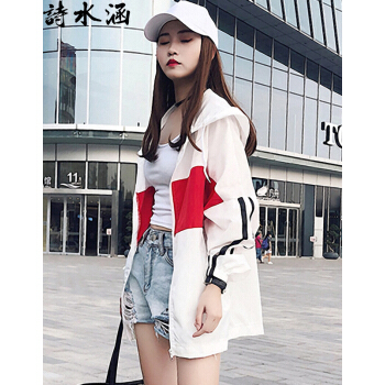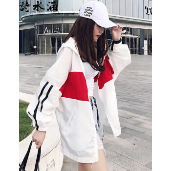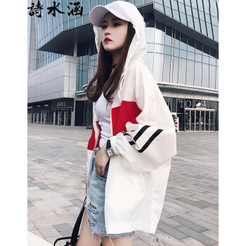 短外套>>诗水涵 防晒衣女2020夏季新款韩版中长款防晒服女宽松学生百搭薄款外套女装时尚户外开衫棒球服防晒衫女 红色 XSS