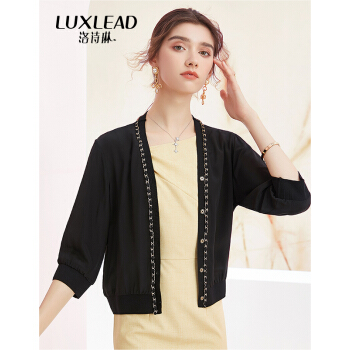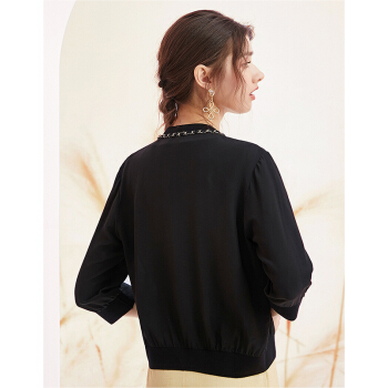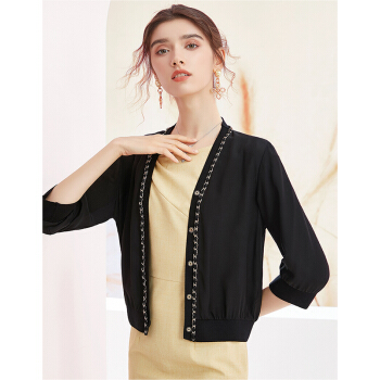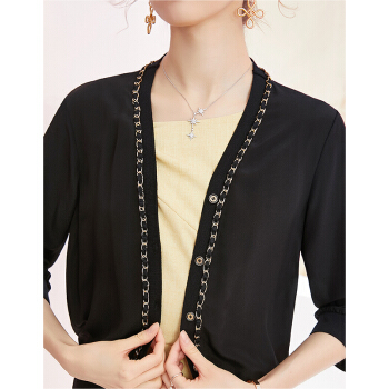 洛诗琳2020夏秋新款真丝开衫女重工链条拼接小外套透气百搭单品 付款4天发 付款4天发 黑色 XL