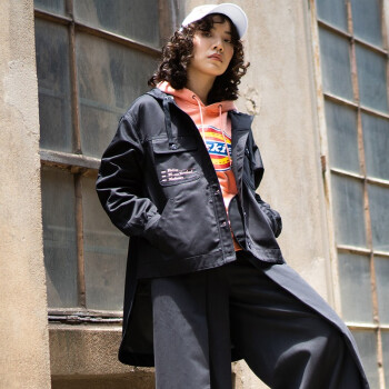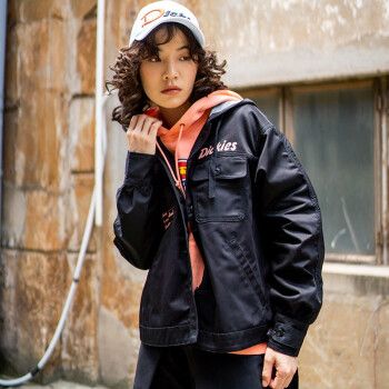 Dickies字母印花连帽夹克 秋季新品女式多袋燕尾薄外套DK008106 黑色 L