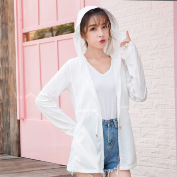 南极人防晒衣女中长款皮肤衣2020夏季新款防晒服薄款修身时尚bf短外套女装 白色 L