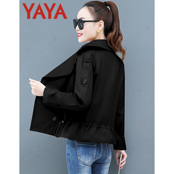 鸭鸭服饰yaya小个子外套女春秋季2020新款夹克休闲上衣春秋装百搭短款女士风衣 卡其色 L