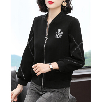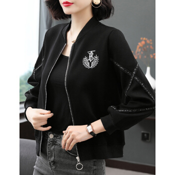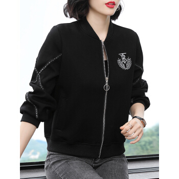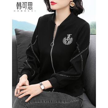 短外套>>【精选好货】 韩可思棒球外套女2020春秋季新款女装女士短外套棒球服妈妈装春秋休闲宽松外穿上衣 黑色 请拍正确尺码