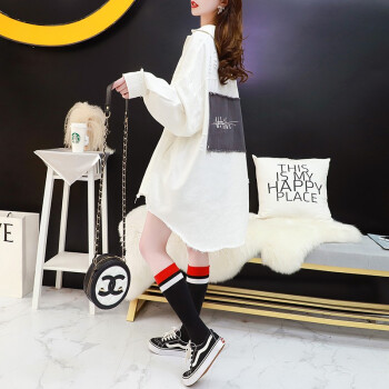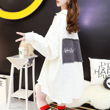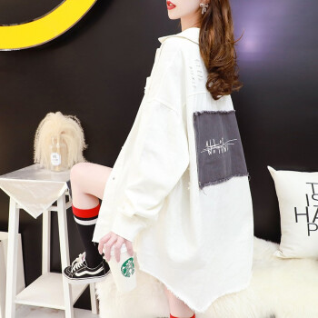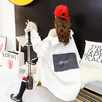 小赖猴韩版宽松牛仔外套女春秋2002新款早秋季小香风中长款牛仔衣 米白色 均码