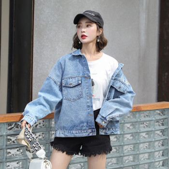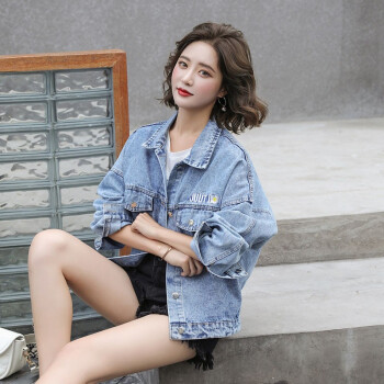 淑蔓婷牛仔外套女春秋2020新款宽松韩版bf百搭学生复古网红刺绣上衣ins 浅蓝色 M