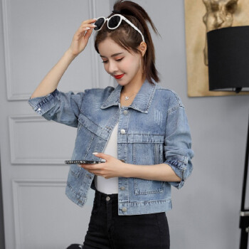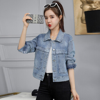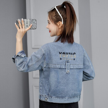 短外套>>阿顿资短外套女学生牛仔春秋2020新夹克款韩版宽松时尚洋气短款简约英文刺绣上衣潮 8752 图片色 M