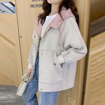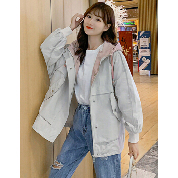 萱蓝外套女春秋装2020韩版新品宽松百搭森系短款棒球服休闲连帽工装上衣风衣潮2307 米色 L