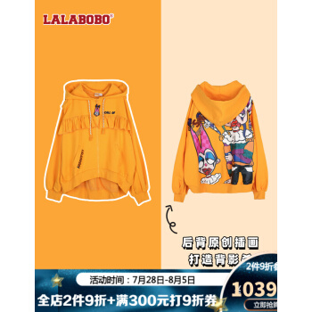 短外套>>【2020秋季新款】LALABOBO鬼马JOKER宽松落肩连帽卫衣短外套|L20C-WSTS11 黄色 XS