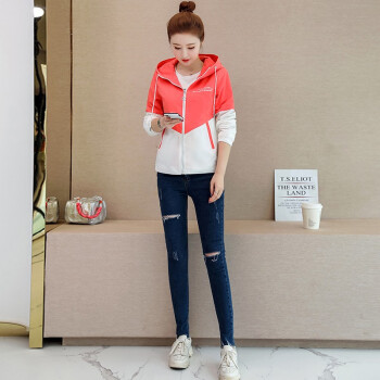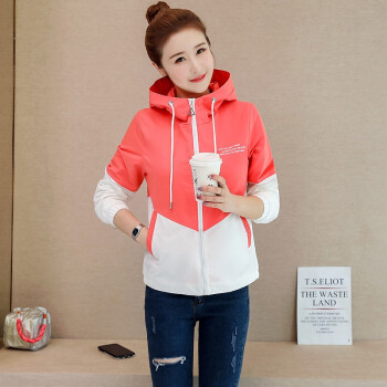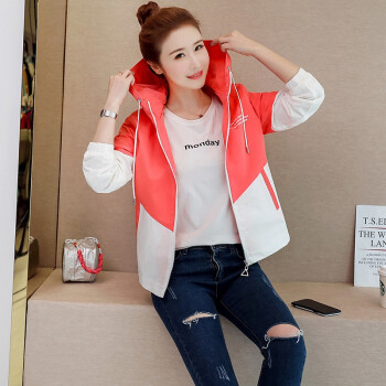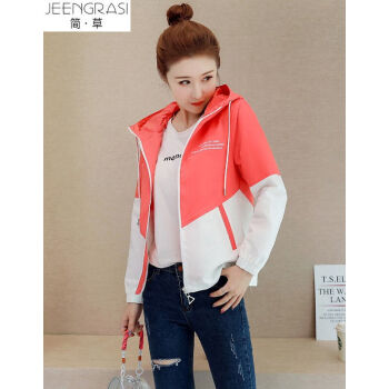 简草 短外套女2020秋季新款时尚潮流休闲百搭韩版气质拼色长袖连帽外套女D5812 桔色 L