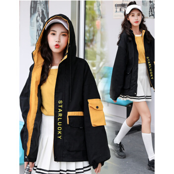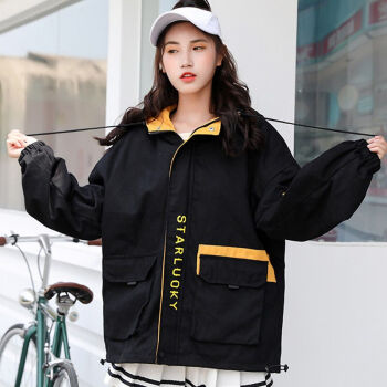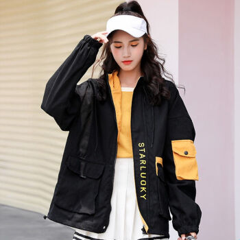 茵美伊 短外套女2020春秋女装大码韩版百搭BF棒球服工装学生外套女 黑色 M