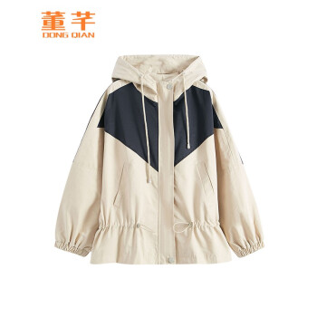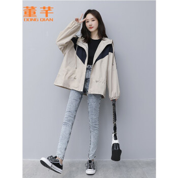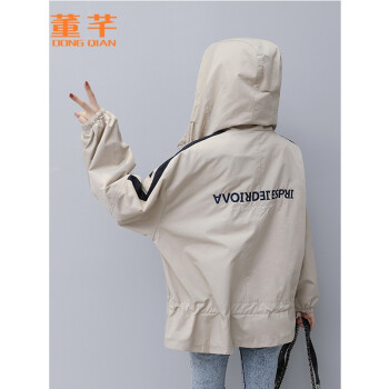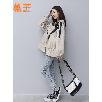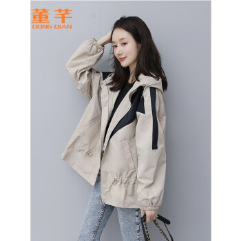 董芊 短外套女休闲风衣2020年春季新款韩版宽松短款大衣外套春秋中长款小个子 杏色 S