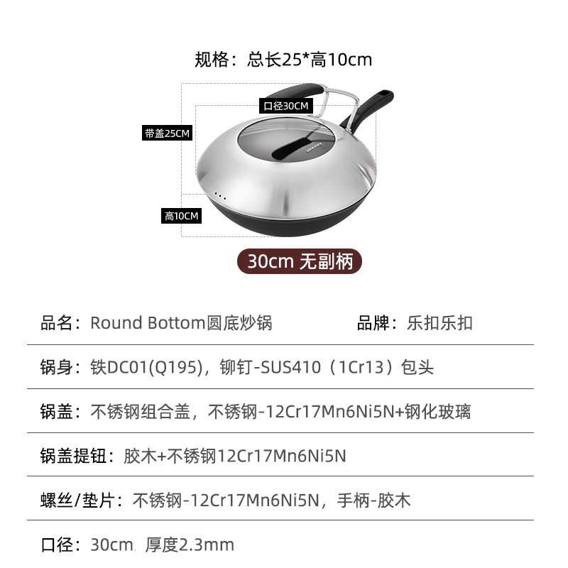 煤气灶无涂层炒菜锅30CM【铁/图片色】