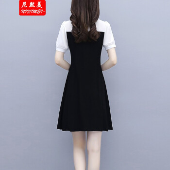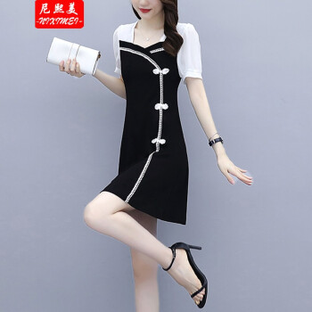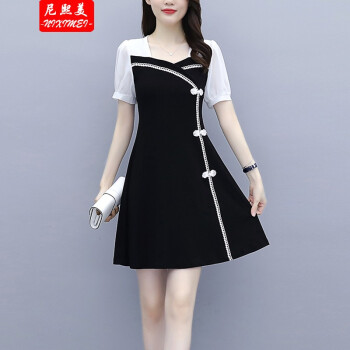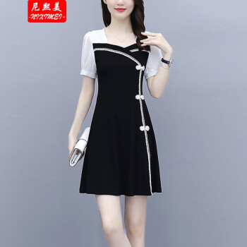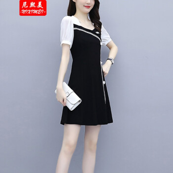 尼熙美 大码女装胖mm2020夏装新款胖妹妹气质宽松显瘦遮肚子小黑裙加肥加大小香风旗袍遮肉连衣裙 黑色 3XL 建议145-160斤
