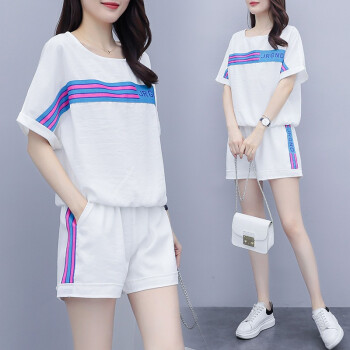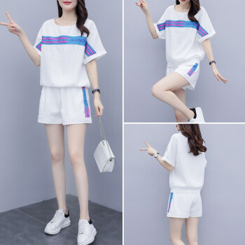 大码女装>>睡妍 大码女装套装女夏2020夏季新品韩版胖mm宽松显瘦短袖T恤短裤两件套休闲套装女 7319 黑色 XXL(135-155斤)