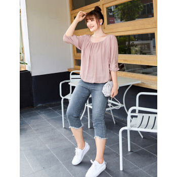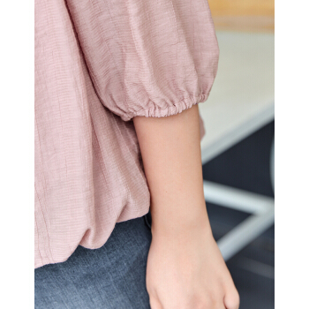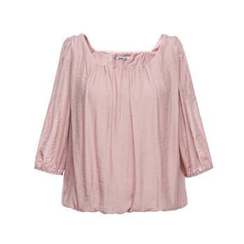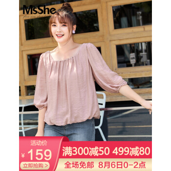 MsShe大码女装2020新款胖mm柔软细腻凉快舒适人棉方领泡泡袖衬衫 薄雾玫瑰色现货 3XL