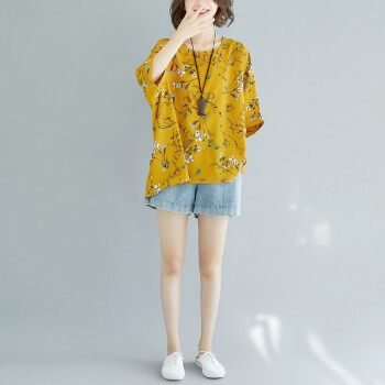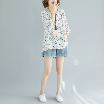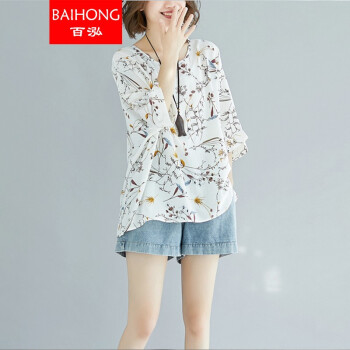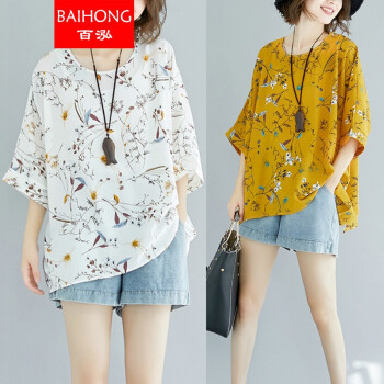 百泓 胖妹妹加肥加大码女装夏新款装200斤韩版上衣宽松显瘦碎花蝙蝠袖雪纺衫潮 白色 大码均码【建议100-220斤】