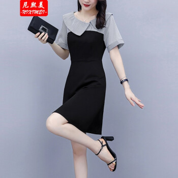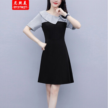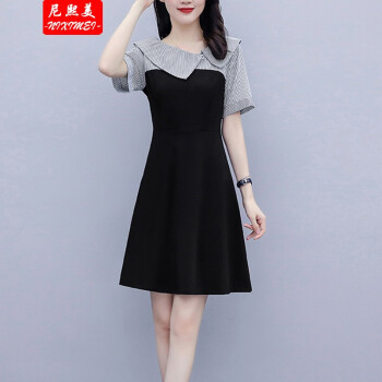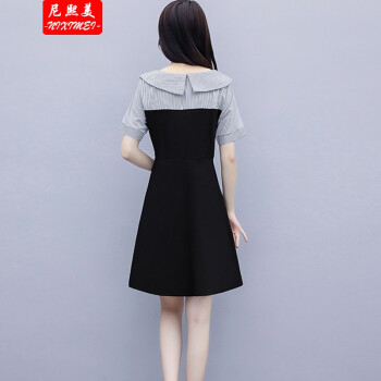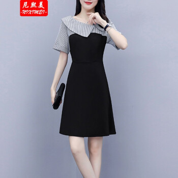 大码女装>>尼熙美 大码女装胖mm2020新款胖妹妹夏装宽松显瘦遮肚子连衣裙拼接加肥加大码遮肉桔梗裙 黑色 3XL 建议145-160斤