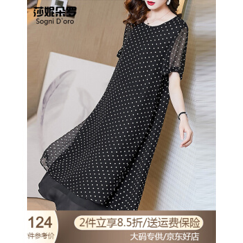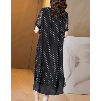 莎妮朵罗大码女装雪纺连衣裙2020夏装新品气质优雅圆点宽松短袖长裙16174 黑色 4XL建议160-180斤穿着