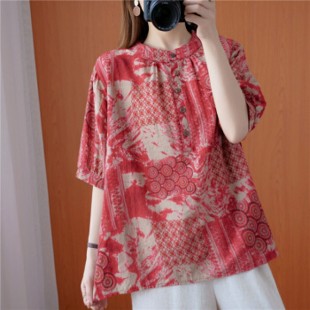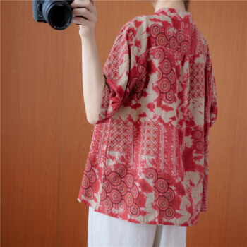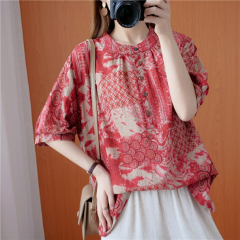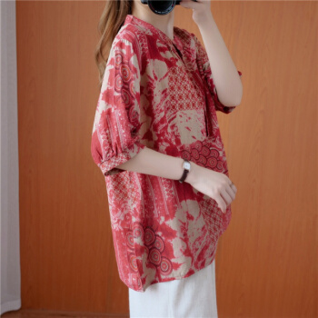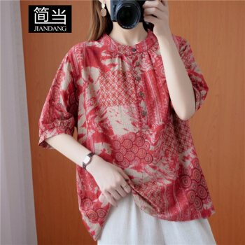 简当2020夏装新款加肥加大码女装胖妹妹MM涂鸦渲染纽扣短袖胖MM遮肚显瘦衬衫T恤上衣BS1988 图色 大码均码