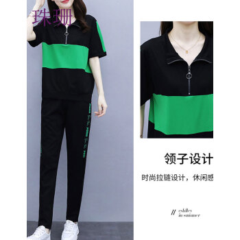 珠珊大码卫衣套装女2020休闲裤子女时尚新款上衣女装运动长裤洋气秋两件套 6109黑色 L(建议95-110斤左右)