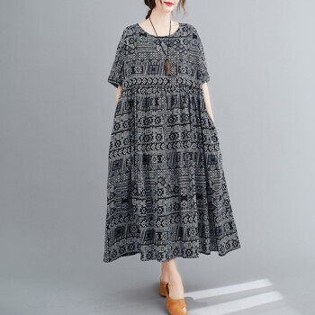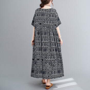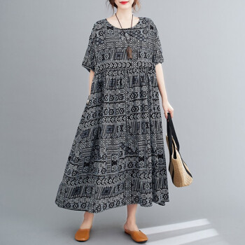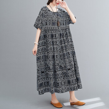 零点蚂蚁加肥加大码女装胖mm夏装洋气时尚休闲宽松遮肉连衣裙长裙胖人女装长款裙子 图片色 均码【130-220斤】 |