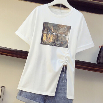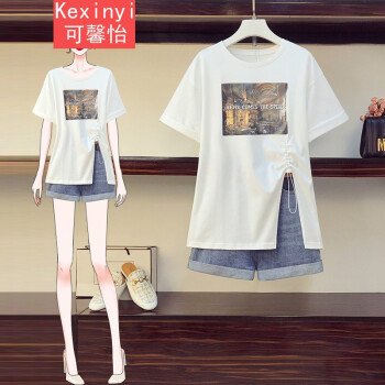 可馨怡 加肥加大码女装胖mm新款胖妹妹夏装200斤洋气遮肚子显瘦t恤牛仔短裤时尚两件套装 套装 XXXL(建议150-175斤左右)