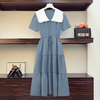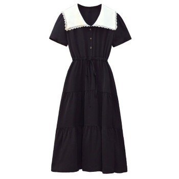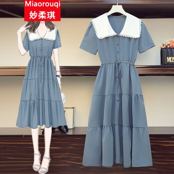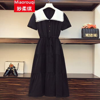 妙柔琪 胖妹妹夏装新款韩版加肥加大码女装微胖mm拼接宽松遮肚子显瘦连衣裙200斤胖人女装 黑色 XXXL(建议150-175斤左右) |
