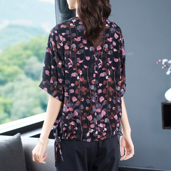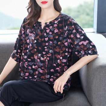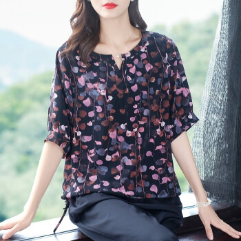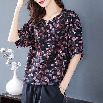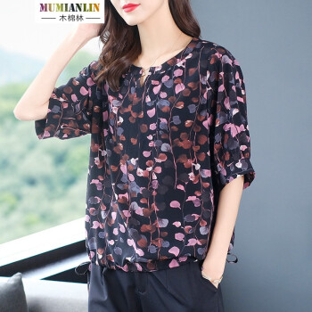 木棉林胖妹妹mm短袖上衣加大码女装2020新款夏装洋气印花宽松遮肚子显瘦T恤Z202729 黑色 3XL建议160-180斤