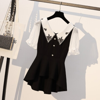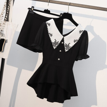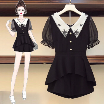 芷依丽 大码时尚套装女2020夏季新款韩版宽松显瘦胖MM短袖T恤女休闲阔腿短裤洋气减龄遮肚子两件套 黑色 L(建议96-115斤)