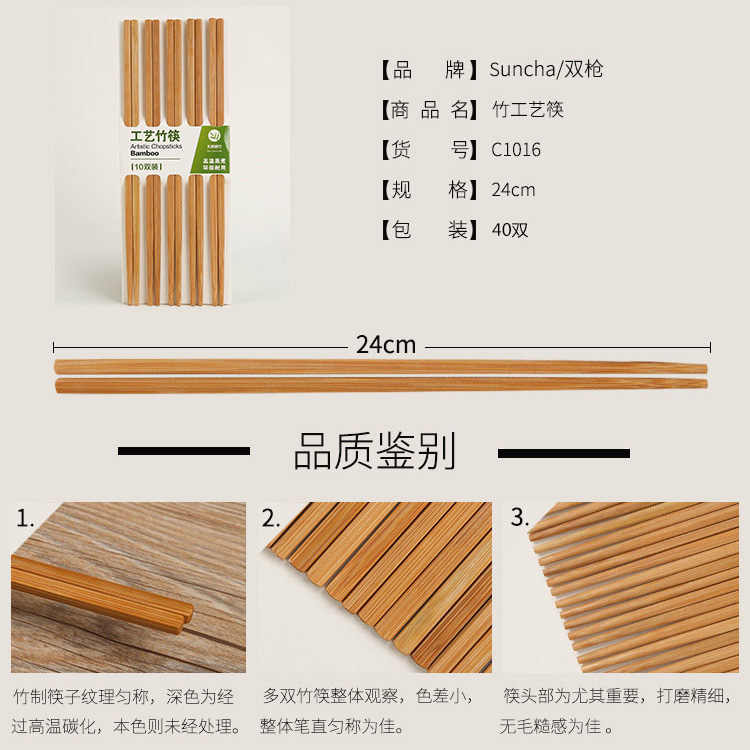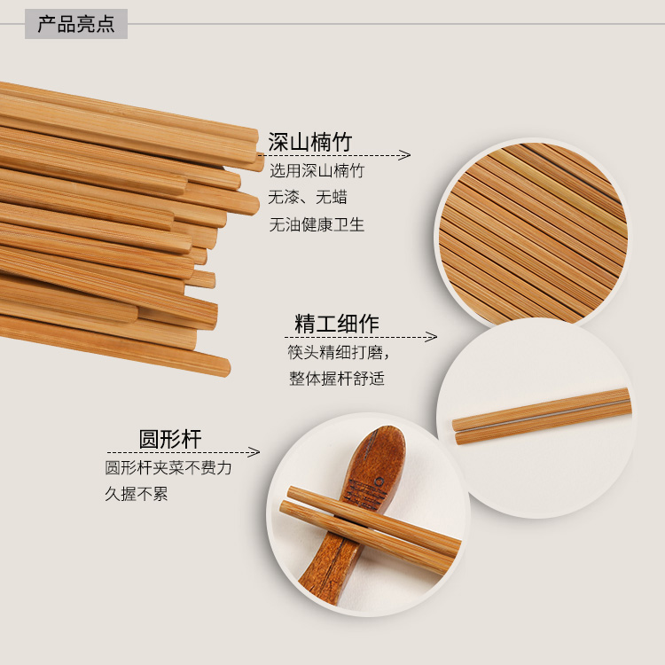 家用竹筷无漆无蜡40双装【竹/竹原色】