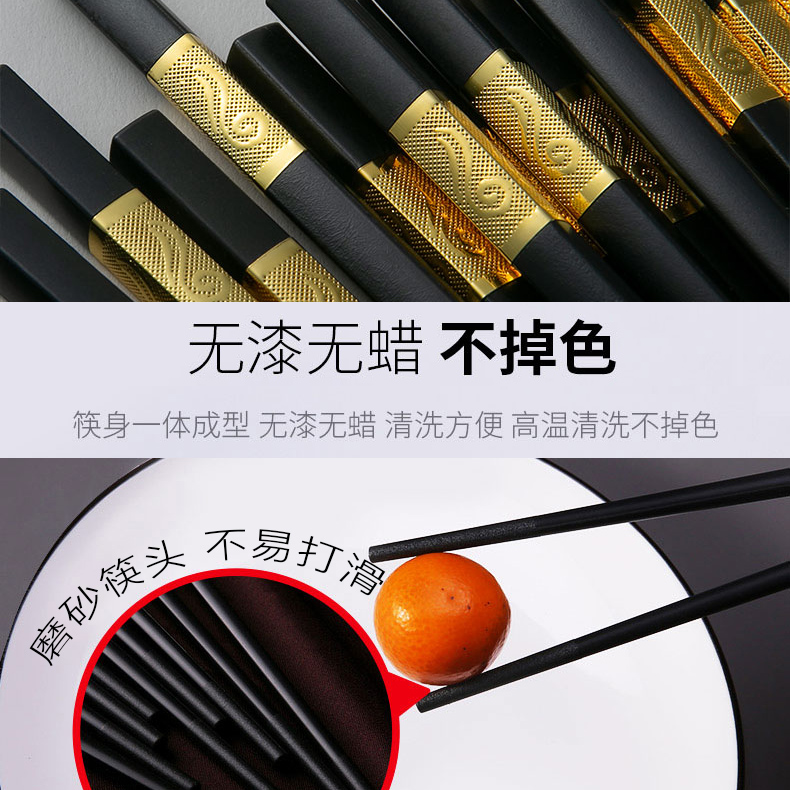 凤凰图家用防霉合金筷10双装【PPS及玻璃纤维合成材料/黑色】