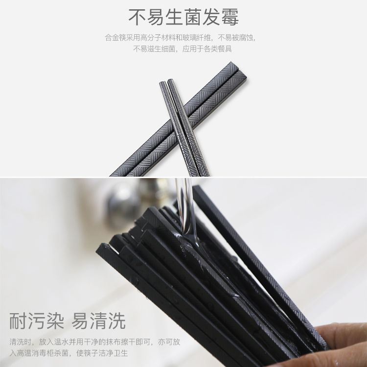 双枪 无漆无蜡不锈纯色合金 20双装【pps+玻璃纤维/黑色】