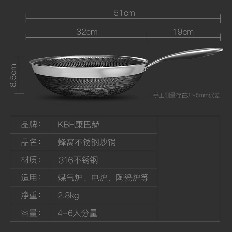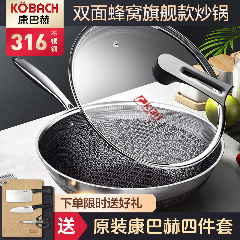 【超值单品】【送康巴赫厨房四件套】康巴赫316不锈钢双面屏旗舰款炒锅32cm【316不锈钢/图片色】