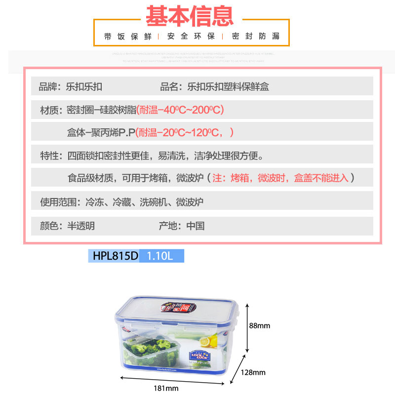 塑料保鲜盒大容量保鲜碗便当盒饭盒1100ML*2【塑料/半透明】