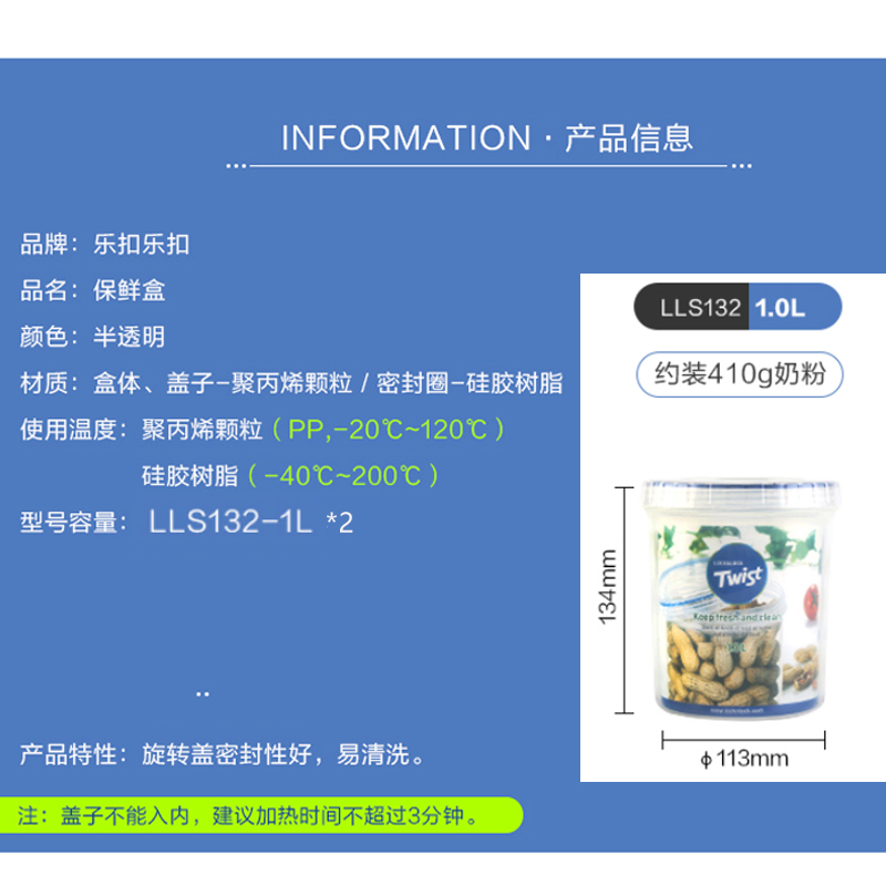 圆形塑料保鲜盒两只装 1L*2【塑料/透明】