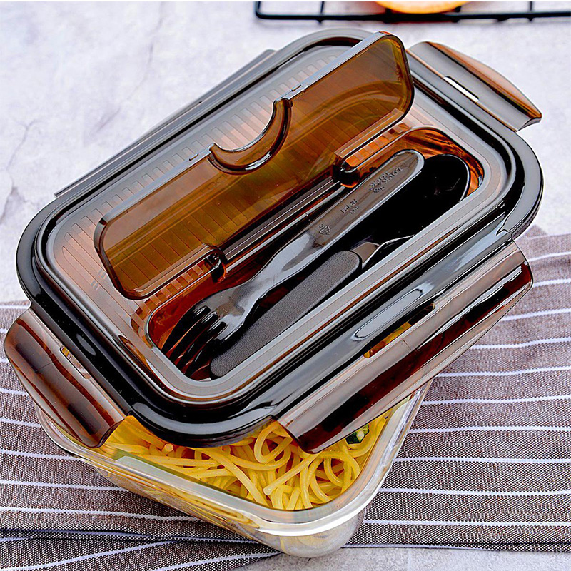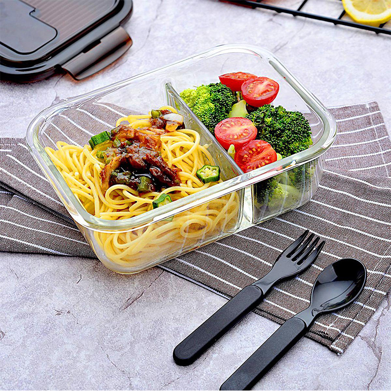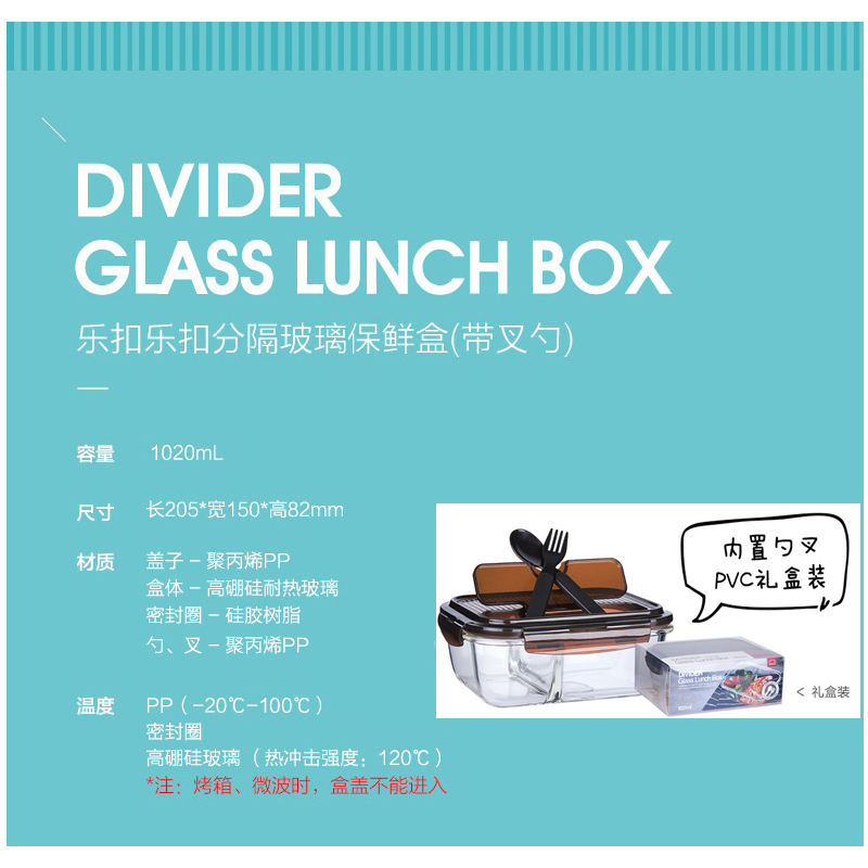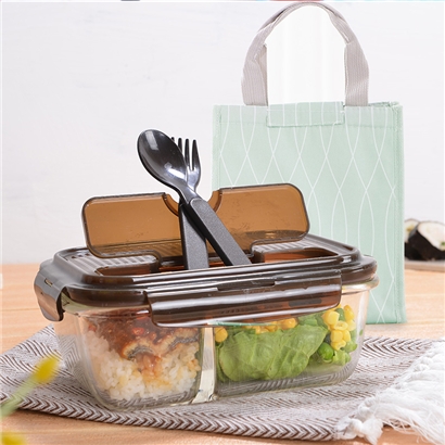 保鲜盒玻璃饭盒分隔便当盒微波炉专用碗加热上班族长方形 送时尚便当包【玻璃/透明】