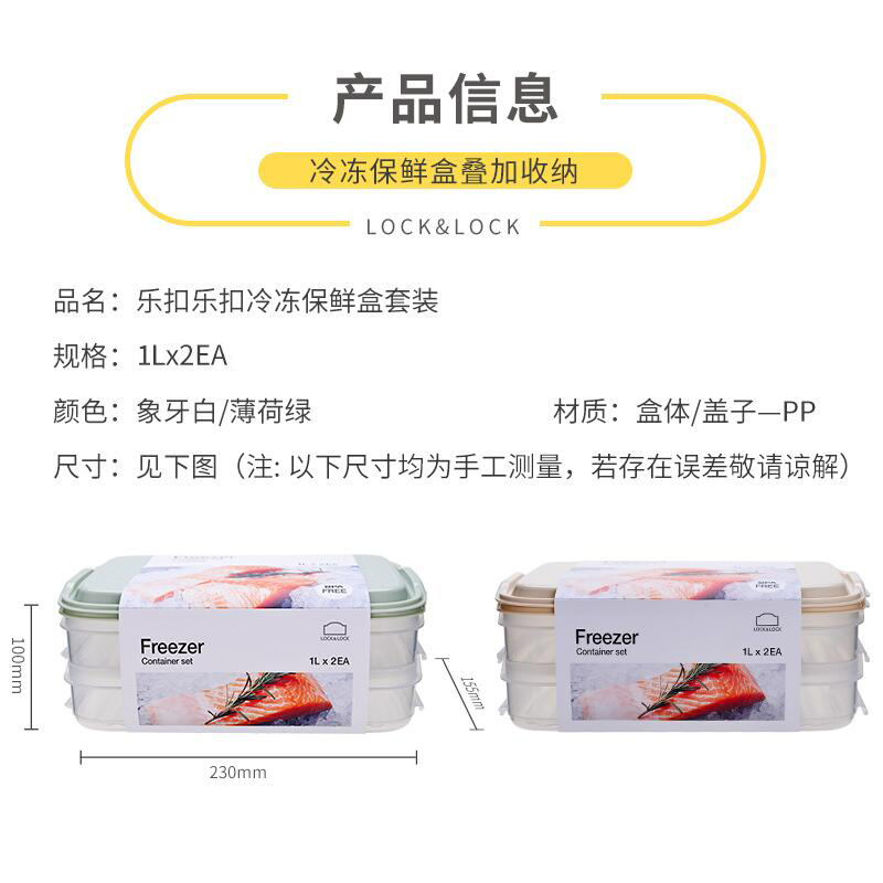 ( 买就送乐扣原装保鲜膜)带盖密封塑料保鲜盒1L套装【塑料/颜色自选】